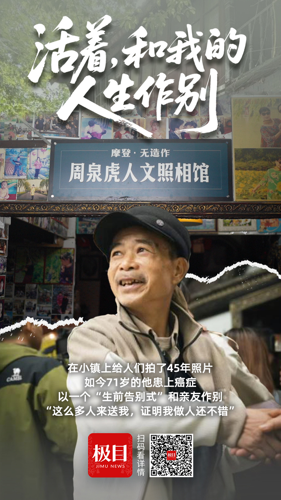 吉姆新闻记者 唐家彦 当死亡不可避免时,你该如何告别生命? 71岁的阿虎患有肺癌,他决定于2025年秋季在浙江省杭州市西湖区三屯镇举行葬礼。很少邀请亲戚;来的大多是朋友。不要哭泣或拒绝礼物。阿虎和老朋友一样,准备了香肠、瓜子、豆腐干、银行。你不必穿黑色衣服或表现得很严肃。阿胡想开玩笑放松一下。他也想听听朋友们对他的评价,所以临行前他们送给了他一束菊花。周全虎面带微笑出席欢送会(受访者提供)。 Af 在老三墩照相馆工作了 45 年,镇上几乎每个人都为他拍照。他拍摄了100天和100年的照片。拍了婚纱照并拍了尸检照片。他拍摄了团聚和告别。照相馆是fil以数万张照片为主导。从 1970 年代到 2025 年,旧的逐渐消失,新的覆盖旧的,从玻璃展示柜到木门和墙壁。直到现在,阿虎一直在镜头后面,见证着别人的生与死。他人生第一次成为了聚光灯下的主角,受到了很多人的关心和包围。 “我的身体可能会痛死,但我的心是快乐的。”他说,在这个世界上留下这么多友谊就足够了。临终告别“人的寿命越来越短了,说实话,几十年前,你能吃完一碗面,后来吃半碗,最后只吃一点点。”杭州街头,秋天突然来临。葬礼前一天,阿夫回到了他工作了45年的三墩照相馆。它有很多工作要做。一名工人来到车间修理电路。 Af 希望确保商店安全。他然后被告知“保证一百年不发生火灾”。他还需要向弟子曹孟奇讲解水龙头坏了怎么办,如何卷轴换底布。当我爬上通往二楼的狭窄木楼梯时,我告诉曹梦琪要定期掸婚纱。又名三屯古代照相馆、周泉湖人文照相馆。阿胡时不时地修理他的照相馆。钨丝灯上覆盖着一层布,这就是照明灯。自己配置复杂的交换机。拍摄场景被几面墙划分为不同的主题:宫殿风格、工作室和前女性闺房。窗户上贴满了阿福拍摄的一张照片。除了普通面孔外,还有香港名人和杭州电视台主播的照片。它们分布在窗台、柱子和柜台上。新的东西覆盖了旧的东西,但几乎没有什么自己的东西。您打印了照片,但找不到合适的位置来放置它。然而,住房也在迅速老化。漏水的屋顶已修好,人体模型的断肢已被丢弃,柜台的椅子不稳定,塑料封口机仍然无法加热,放置塑料花的木板没有粘合好,用于照片编辑的台式电脑早已停用且无法开机。他的身体也随着他而衰老。 2024年6月,Af被诊断出患有晚期肺癌,健康状况每况愈下。有时他去商店后会睡上好几天。他在门上贴上了“关门”的字样,被迫承认自己无法再打开门了。 “如果你喜欢摄影,想开店,请联系我,我想继续经营这家店。”一位 28 岁的中士引用了这句话。一个月前,我还在意就在老照桑,所以我临时去找了一下,偶然间,就被批准开始浏览了。在适当的时候,我在商店的网站上推荐了它。五月,阿虎来到主包厢,想着尝试一下,就挂了一个钩子。曹泰出手,随即拦住了电报号码中的双方“交通”。照片也是在阿托拉的工作场所拍摄的。但院方的意见是不会进行手术,而且在浅崎老人楼层“效果比在医院好”。 ”他觉得“这是一个必须纠正的死亡。”其他人。阿虎是悲伤的,悲伤的,悲伤的。梁子礼的思想和想法:同一段血统,一个人的朋友,一个人的一生,一个人的来世。他去世前的“追悼会”。在我母亲的葬礼上,一群人抬着她的棺材,布置了花坛,表达了他们的谢意。这种想法也被避免了“sakiho”,一块用作棺材材料的旧木板,我想要我的亲戚。我想参加,但我的朋友说:“这太可惜了。”就像是第二道伤口。”“如果那样做,人们会不敢来。”“老陈身边,老虎开了,还有大部分学生的艾灸部,其他的故事,并不是为了表现出视频《不诚了扰2》李的意图,在一个场景中,这个视频中饰演神成的鹿山和色,在选择朋友这个角色时,也患上了癌症,遭受了药膏的渗透。 2024年5月,一位朋友的加冕典礼将在阿虎发送的微信上进行。 “阿图拉位于三重兆(收件人提供),是与阿托拉兼容的合约机,在三重兆生产的口述历史中有记载。十年前,老政治家记载,三重兆也是闹市区。‘’在中心,沿河两岸,聚会频繁,人流密集的地方,前街是三重商业街的中心,外界气温较高。黄昏时期,这里曾是水区物产聚集区,素有小上海之称。初夏时节,老人读诗、读故事、读故事,忘记了酷暑。戴走着,周围高楼大厦拔地而起。三丹镇位于新建的大学和西湖科技园之间,三丹的广告渐渐失去了色彩,显得冷清。 2024年,庙前街到达了一个被遗忘的转折点,改造即将到来。三屯文化站在庙前街租了一间店铺,邀请了十几位老人讲述他们的故事。镜头聚焦在他们和他们身后正在消失的桑丹文化。 “阿虎照相馆”是三屯镇的老朋友给周泉湖的昵称。镇上几乎每个人都在自己的家中拍照,这使得这里成为口述历史采访的必去之地。戴军还记得去照相馆拍欧拉l 2024年8月的历史采访,当时周全虎已经病了两个月。他听说老人拒绝接受记者采访,并多次暗示不想继续。但戴军觉得她的故事很精彩,就耐心地引导他讲。一条河流穿过桑丹醋城。周全虎的祖父是桐庐人,只身来到杭州市中心做裁缝。他的父亲是第二个儿子。抗战期间失去工作,青年时在逃亡途中被俘。由于他个子不大,就被分配去当电报员。后来,当上级命令他上前线时,他的父亲逃走了,一条条河流奔向三丹。据老一辈人讲,周全虎的父亲刚到三屯时,身上只有破烂的衣服和裤子,全身被树